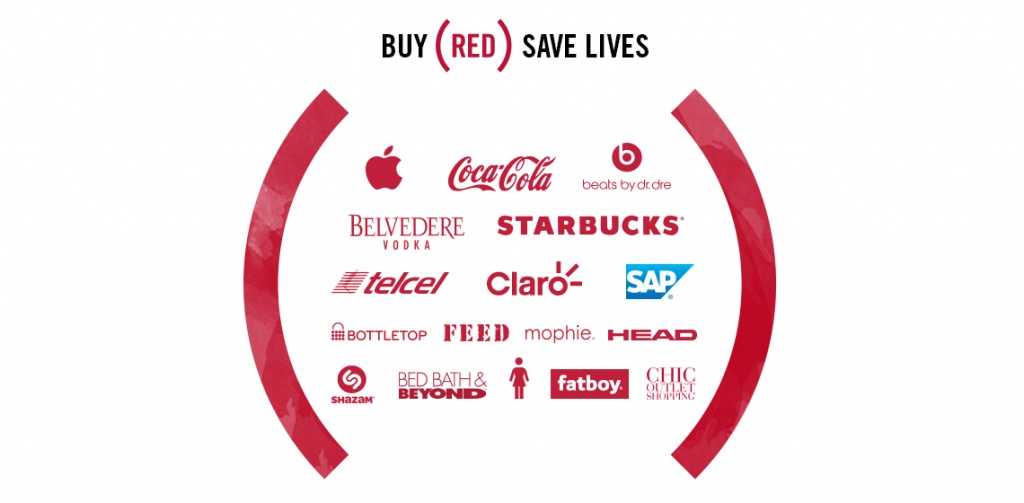 В компании участвуют всемирно известные производители: Apple Inc., Nike, британского подразделения American Express, Starbucks, Converse, Motorola, Gap, Armani, Shazam, Beats by Dr. Dre и другие. Часть денег от продажи продуктов красного цвета с символикой (PRODUCT) RED идет в Глобальный фонд борьбы со СПИДом в Африке.