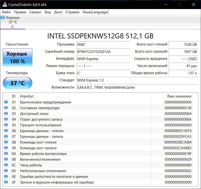 - оперативная память: 4 ГБ DDR4 1866 МГц