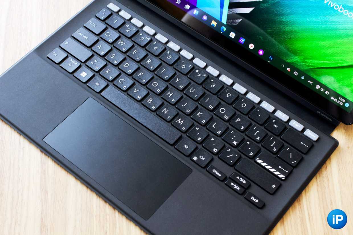 Устройство не стоит рассматривать как тяжёлую мощь для профессионального использования, это повседневный гаджет для лёгких задач. Комплектные клавиатура, подставка, стилус и чехол прямо намекают на многофункциональность ASUS Vivobook 13 Slate OLED.