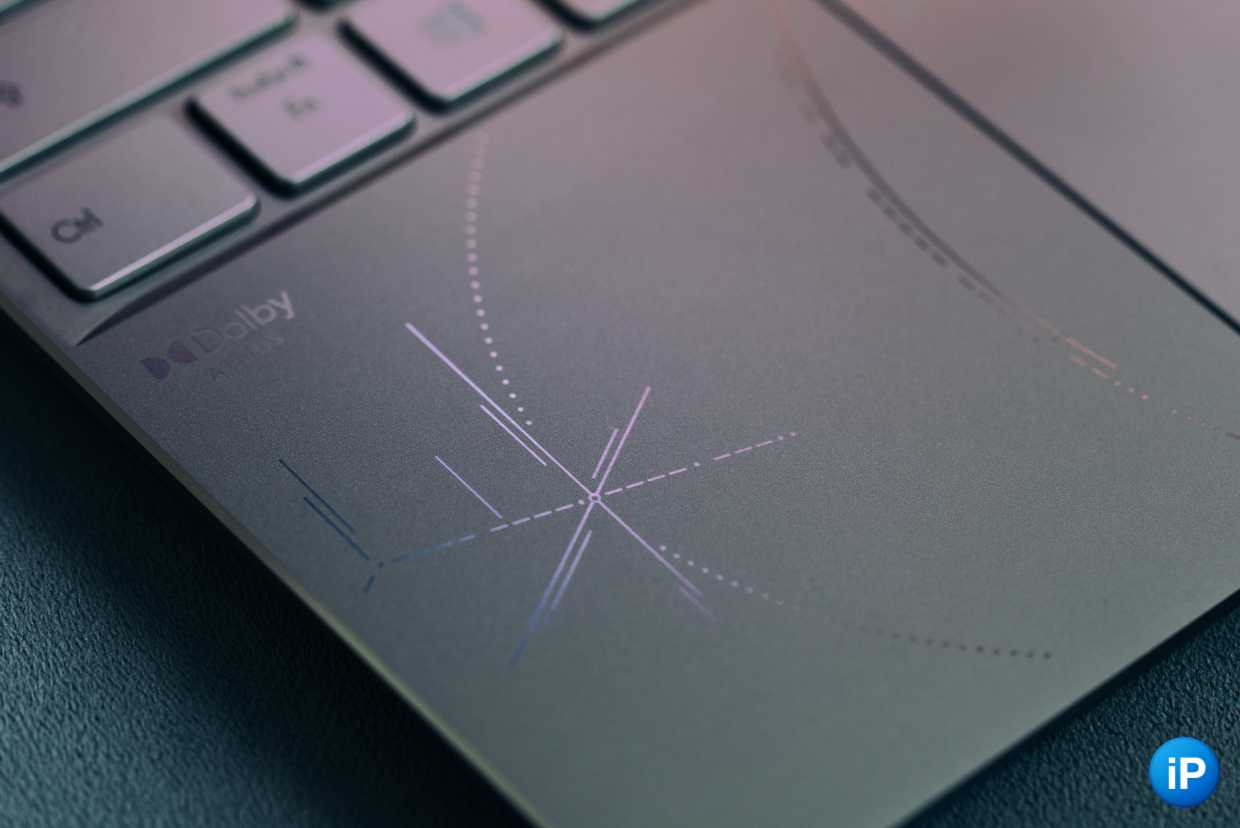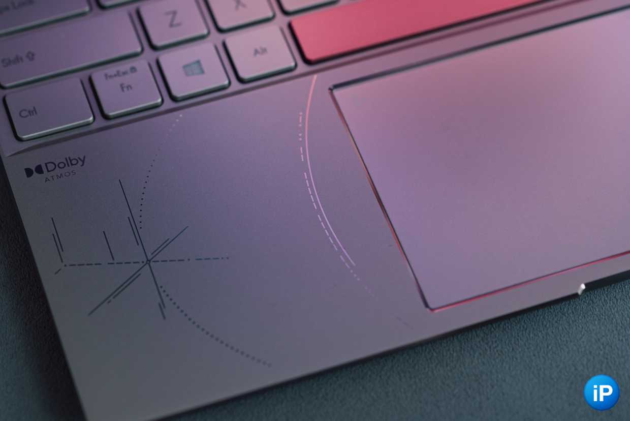 По обе стороны от тачпада знаковые для компании символы: 1992 (запуск ноутбука в космос), MIR, P6300 (модель из космоса), ASUS, ZENBOOK и 2011 (релиз первого дзенбука)