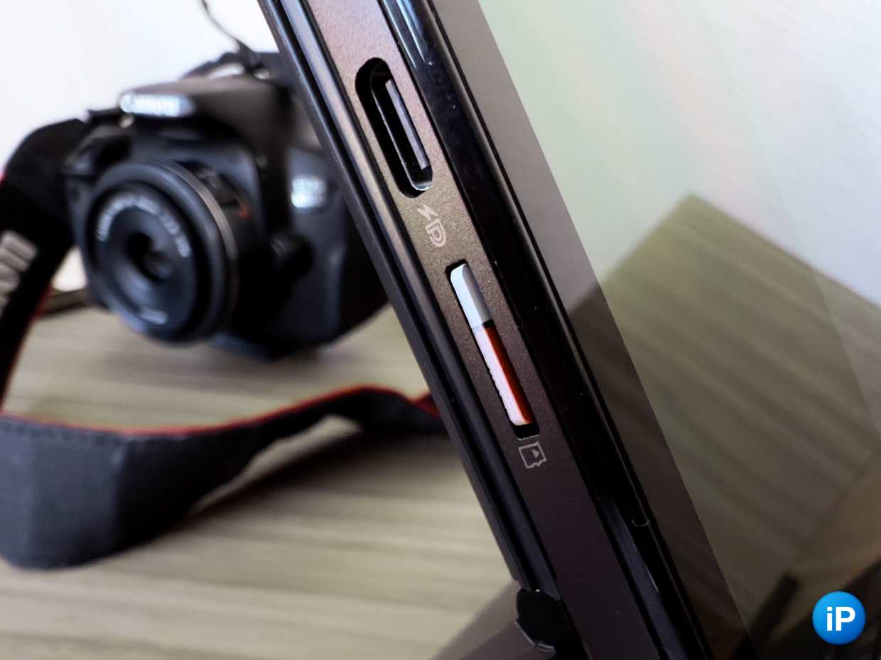 Среди недостатков отметим небольшое количество разъёмов. Их действительно не хватает, реализовано только всё самое необходимое. Также стоит учитывать глянцевое покрытие дисплея – не для всех приятная обратная сторона сенсорного управления.