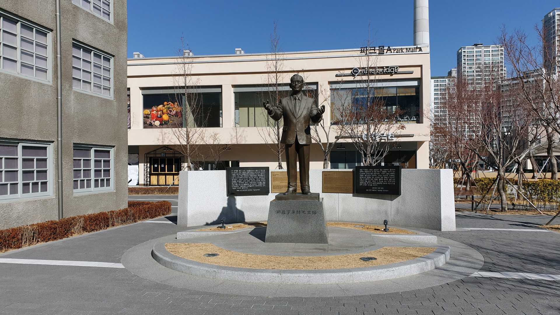Памятник Ли Бёнчолю в Тэгу возле того места, на котором в 1930-х годах находилось первое здание компании Samsung, – оно было разобрано из-за ветхости в 1997 году, но недавно восстановлено в качестве мемориала