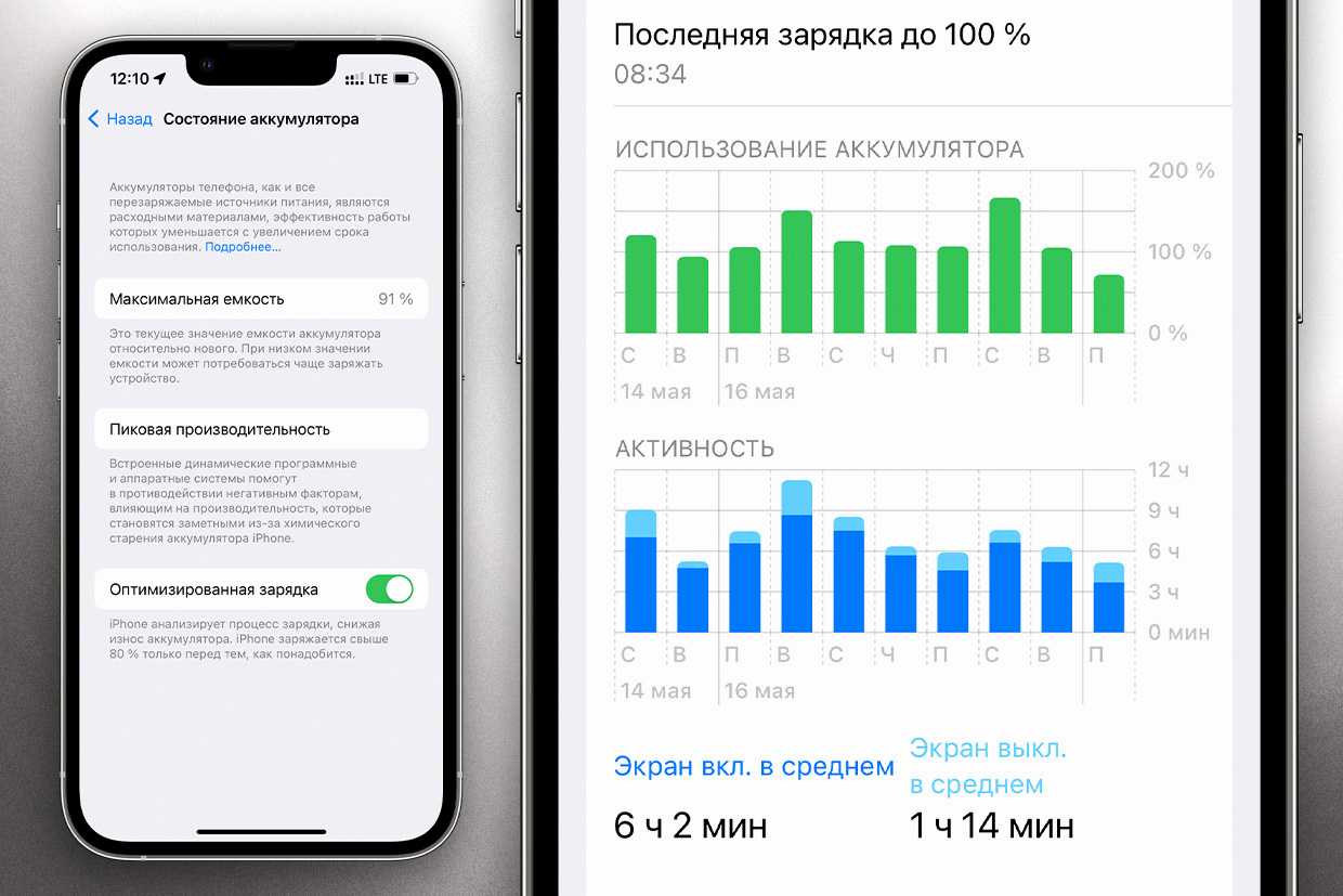 Пример 2. Купила iPhone 12 Pro Max в июне 2021 года. За 11 месяцев ресурс опустился до 90%. Средний расход 1,4 цикла или 140% в день при 13 часах экранного времени.