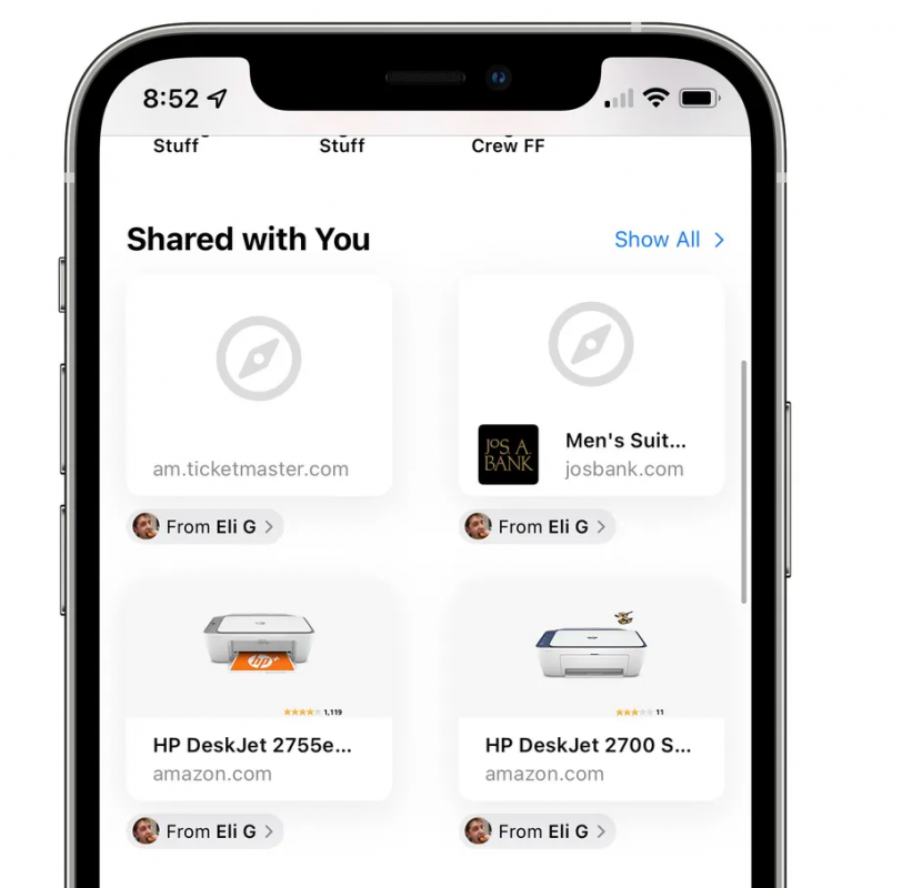 В нескольких фирменных приложениях Apple появился раздел «Доступные вам», который нужен лишь для того, чтобы в очередной раз напомнить: Apple контролирует всю вашу жизнь (по крайней мере все основные сервисы вашего iPhone). Если кто-то отправляет вам фото, видео, музыку, ссылки, подкасты и что угодно еще, эти файлы будут выделены в соответствующих приложениях, чтобы показать, что вы можете открыть их там. Таким образом, если вы проигнорировали фотографии котиков, которые вам в огромном количестве отправляла ваша мама, Apple будет каждый раз напоминать вам об этом при открытии приложения Фото.