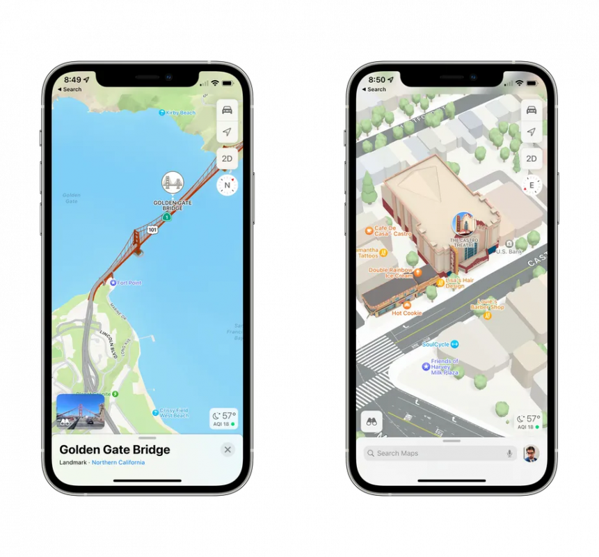 Apple Maps дополнилась красивыми и детальными 3D-картами. Они очень подробны, информативны и выглядят действительно круто. Проблема лишь в том, что сейчас трехмерные модели доступны лишь для нескольких крупных городов мира. Выглядят карты действительно потрясающе и доступно. Все крупные здания и значимые объекты получили свои трехмерные модели, а при большем увеличении карта даже показывает разметку на дороге.