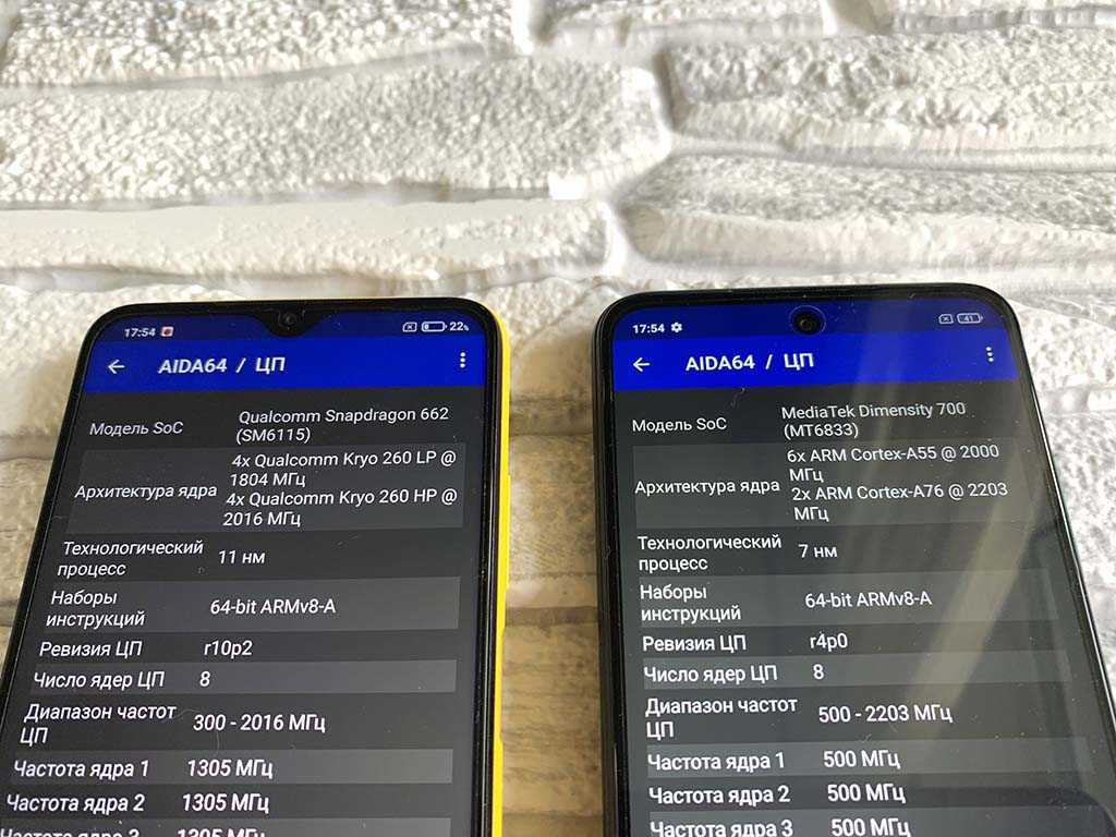 | Диафрагма фронтальной камеры Размер «дырки» объектива, через которую попадает свет на матрицу. Чем меньше делитель, тем больше диафрагма, что позволяет большему количеству света проходить через объектив, повышая качество съёмки при плохом освещении, но ухудшая качество изображения по краям и искажая перспективу. | f/2.05 | f/2.2 |