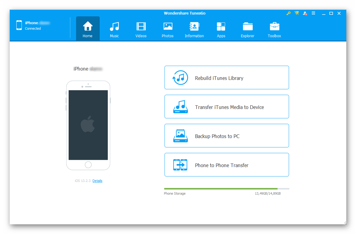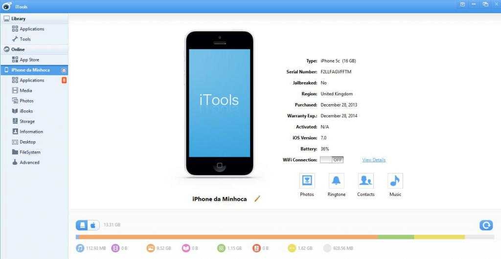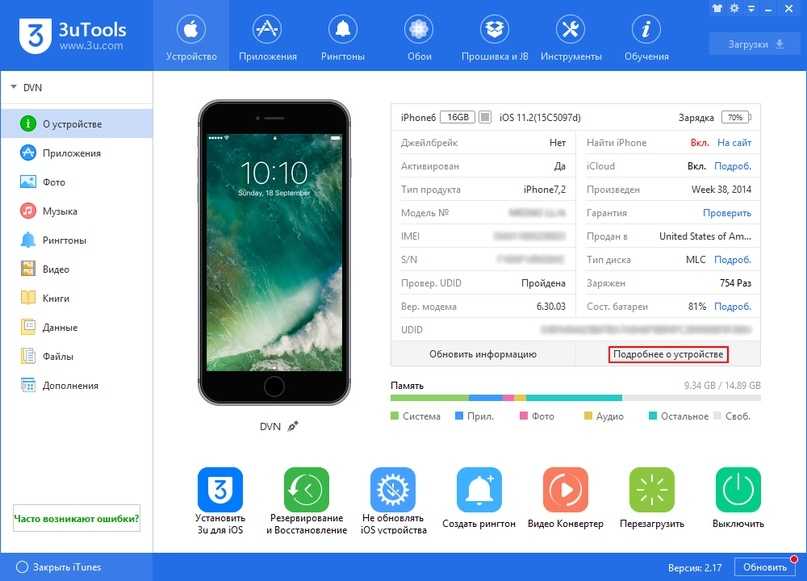 По сравнению с предыдущим вариантом, который обычно применяется в качестве средства для закачки контента, iMazing наделён более широким функционалом. При первом же подключении пользователь может увидеть подробную информацию о мобильном устройстве, в частности, состояние памяти, текущий заряд аккумулятора, а также другие моменты, которых нет даже в iTunes.
