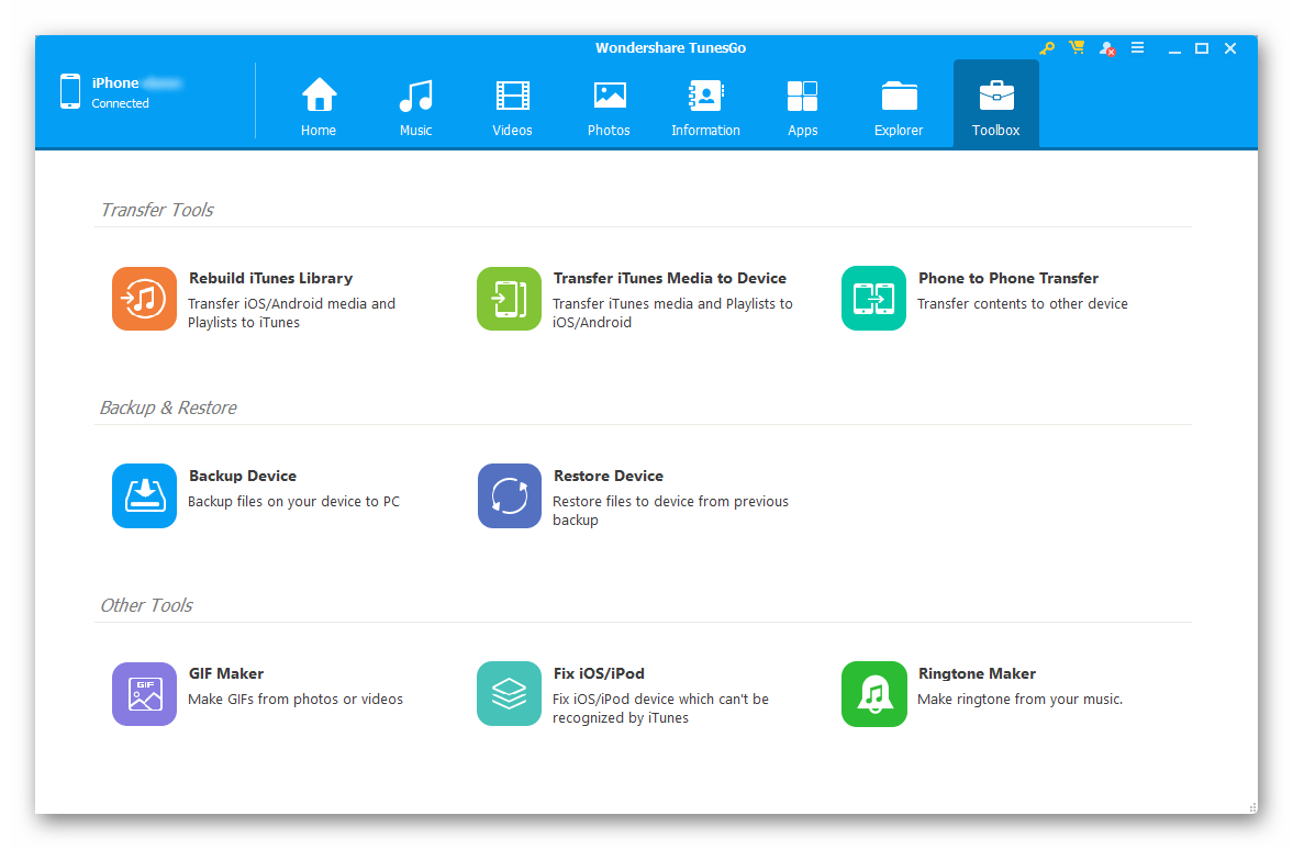 В рубрике Инструментов можно просмотреть и выбрать дополнительные инструменты для работы с телефоном. Например, найти и загрузить iTunes в последней версии.