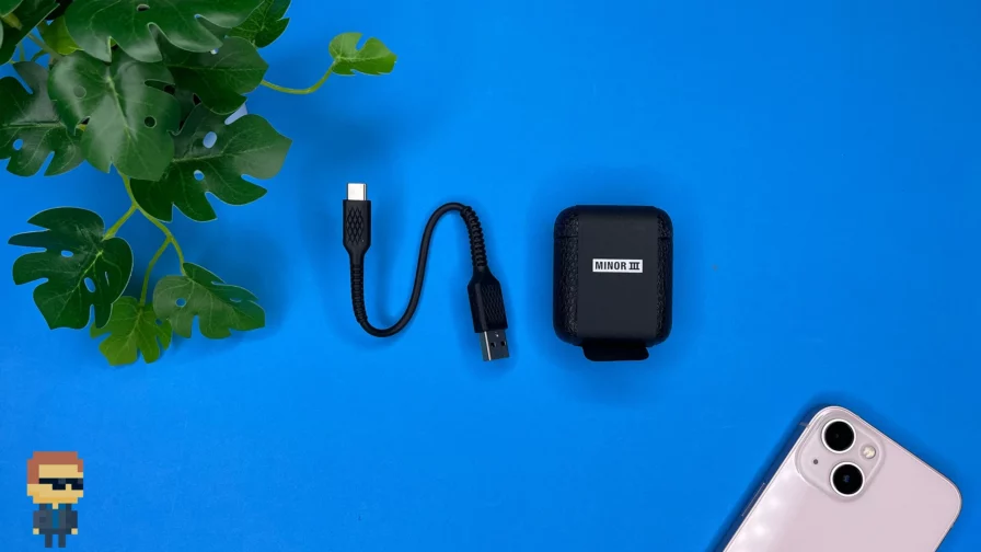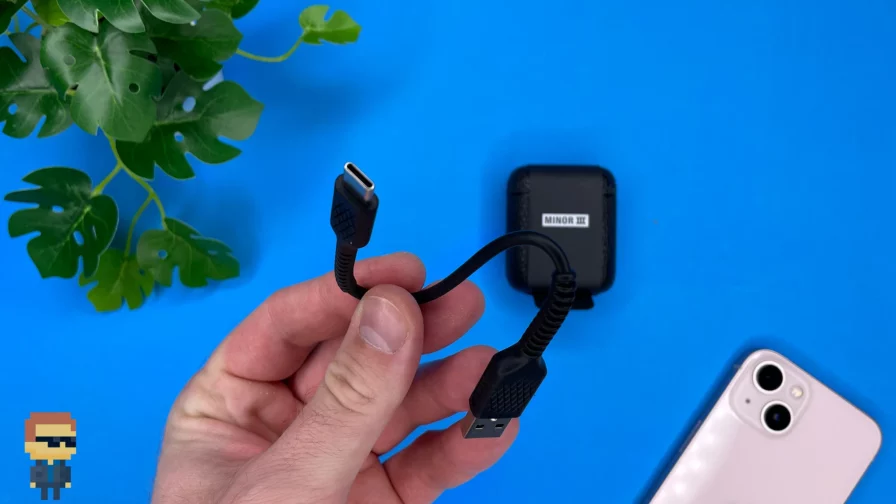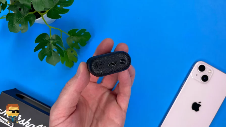 Снизу находится порт зарядки USB-C и аудиоразъем 3.5 мм, в который вставляется спиральный провод, идущий в комплекте.