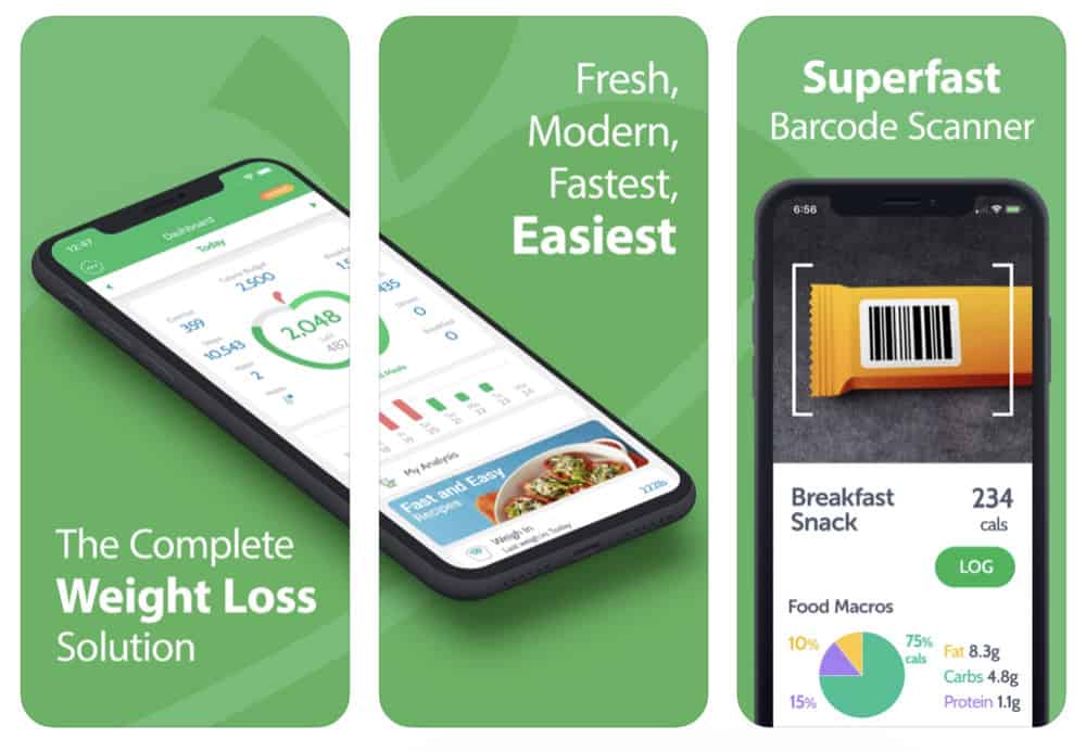 FatSecret поддерживает сканирование штрих-кодов, имеет функцию распознавания изображений для фотографирования продуктов, а поиск имеет функцию автозаполнения для более быстрого добавления еды. Приложение может синхронизироваться с Fitbit, Google Fit и Samsung Health.
