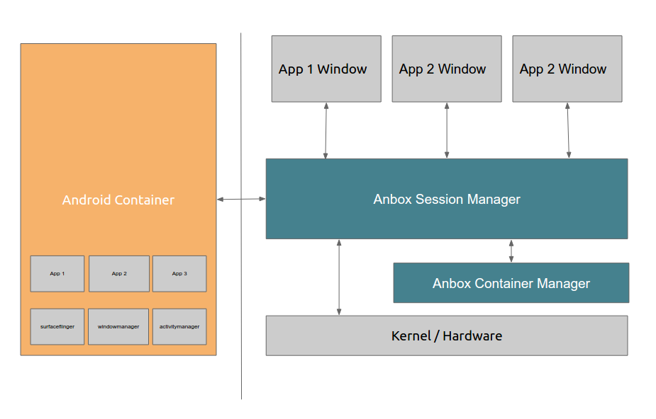 Каждое приложение в своем собственном окне Anbox размещает с помощью модифицированного композитного менеджера hwcomposer, который Android использует для наложения графических слоев. Hwcomposer запрашивает все слои каждого приложения и отдает их Anbox, который затем формирует индивидуальные окна для отдельно взятых приложений.