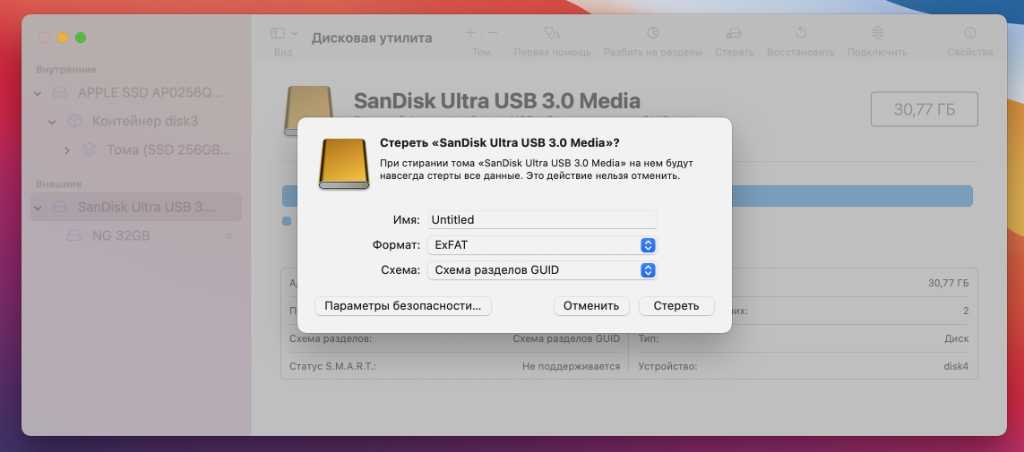 Форматируем диск в ExFAT — наиболее универсальный вариант