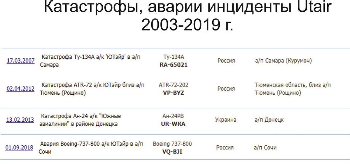 Статистика на Airdisaster.ru показывает только вертолетные катастрофы, инцидентов с пассажирскими лайнерами не зафиксировано.