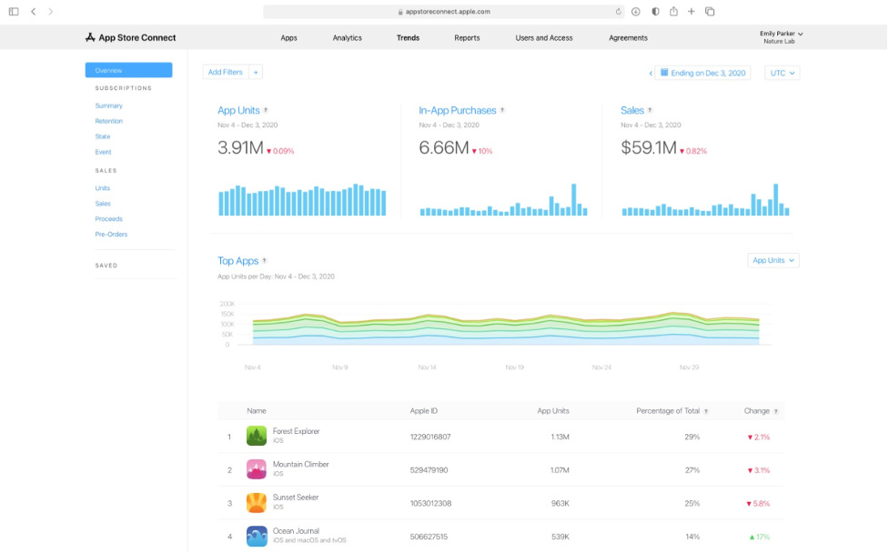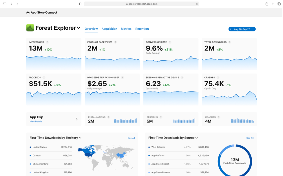 Apple App Analytics — это часть App Store Connect, инструмента Apple для публикации и управления приложениями в App Store.