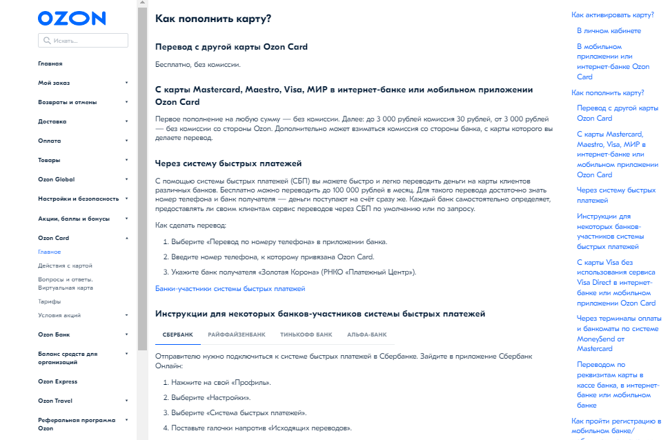 Еще один платный способ – это посещение любого банка. Вам потребуется изначально получить реквизиты вашей карты OZON. Это можно сделать на странице с данными карты в личном кабинете. Оплатить смоете через кассу банка, или установленные терминалы оплаты. Потребуется указать подробные реквизиты открытого у вас счета.