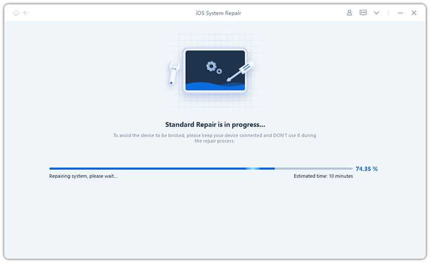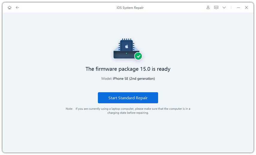 Once you have downloaded the firmware package, you should start repairing the iOS system. Just click “Start Standard Repair” and the process will begin.