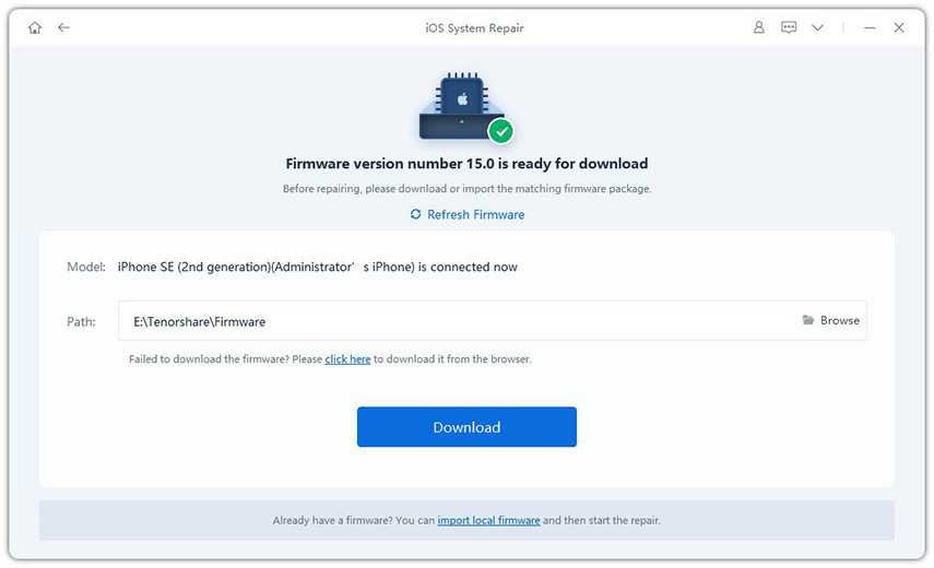 Afterward, you will be prompted to download the latest firmware file to fix the iOS issue. Here, you should click “Download”.