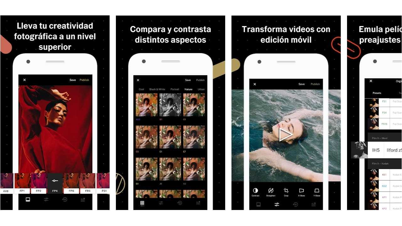 Учетная запись очень интересные пресеты для редакторов, таких как воссоздание аналоговой пленки или старых камер Kodak, Fuji, Agfa, FilmX, Polaroid и т. д., а также передовые инструменты редактирования, такие как HSL, Split Toning, редактирование видео, коллажи и т. д. Несомненно, одно из самых полных и профессиональных приложений, если вы любите творчество и работаете с аудиовизуальными форматами.