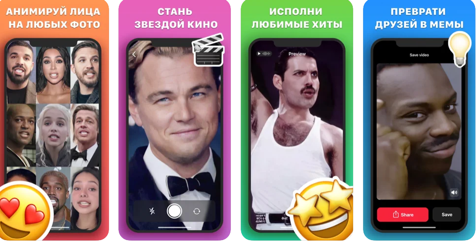 С помощью этого приложения можно заставить лица двигаться под музыку. Интерфейс простой и понятный для обычного пользователя. Имеется много пресетов и настроек для работы с эмоциями на лицах в загруженных снимках.