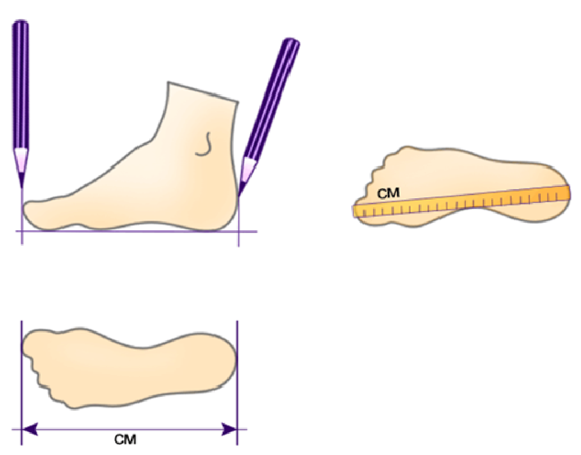 - Для точности можно произвести замеры ноги. Для этого на бумаге обводится контур стопы. Длина – это расстояние между самыми выступающими точками носка и пятки. Полнота – самое широкое место стопы. Определить размер зимней обуви можно, добавив по 5-6 мм с каждой стороны.