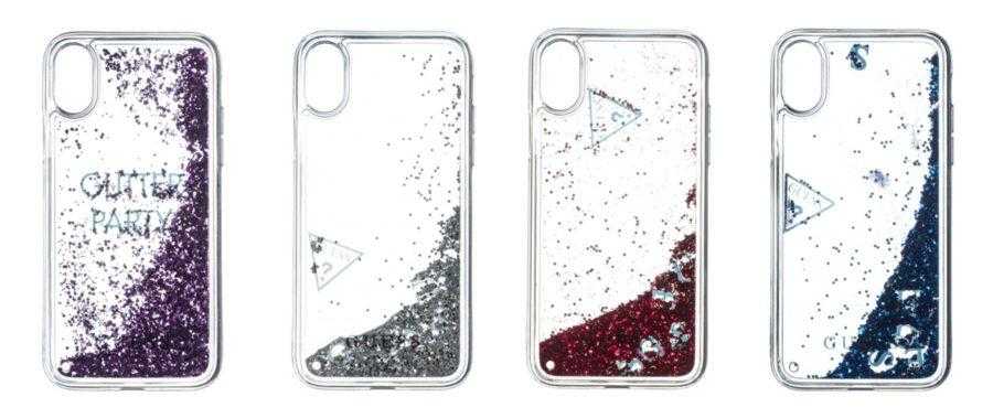 Есть несколько видов чехлов для iPhone X, доступных в коллекции Guess Glitter, включая Raspberry. Этот вариант представляет собой ультратонкий корпус из поликарбоната – прочного пластика с защитой от падения по высокому стандарту и доступен в разных вариациях. Внутри чехла находится вязкая жидкость, как в новогодних игрушках, в которой плавают сверкающие кристаллы. Достаточно хорошенько встряхнуть телефон, чтобы кристаллики задвигались. Варианты цвета включают в себя «Фиолетовый», «Синий», «Серебристый» и «Красный».