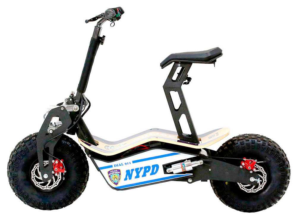 Может разгоняться до 40 км в час, двигатель имеет мощность 800 Вт. На одном ходу можно проехать примерно 35 км. Литий-ионный аккумулятор емкостью 20 А/ч полностью заряжается за 6 часов. Огромные, 15-дюймовые надувные колеса помогут справиться с любыми препятствиями на дороге.