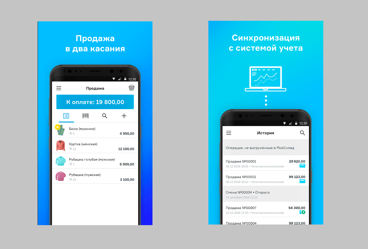 Мобильная касса для смартфонов на Android. Тоже работает по №54-ФЗ и позволяет принимать оплату, выдавать чеки и управлять торговлей.