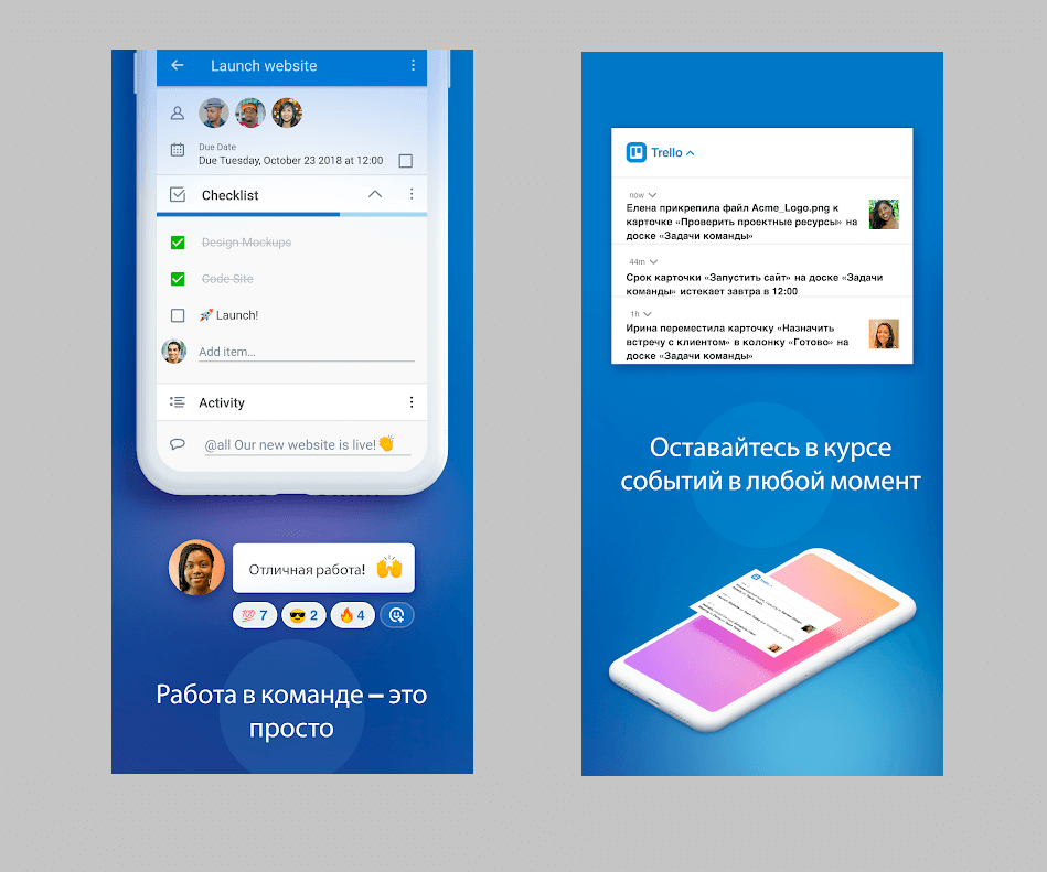 В Trello управляют небольшими задачами и проектами. Вы можете назначать задачи исполнителям (сотрудникам) и ставить сроки сдачи, проверять выполнение работы и видеть, на каком этапе она находится. Другими словами — полностью контролировать сотрудников на удаленке или даже тех, кто работает в офисе, но часто уезжает в командировки.