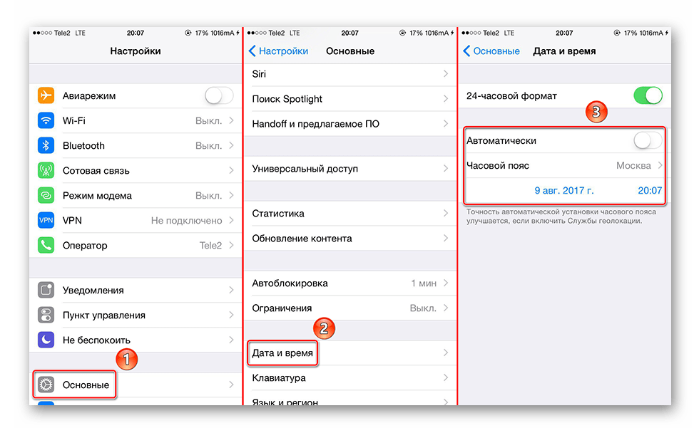 Как исправить ошибку с подключением айфона к app store на iPhone 7/7Plus/8/8Plus/X? Обязательно установите правильную дату и время.А лучше всего выбрать автоматический режим. Убедившись, что с интернетом все в порядке, проследуйте в «Настройки» – «Основные» – «Дата и время», где установите автоматическую настройку времени