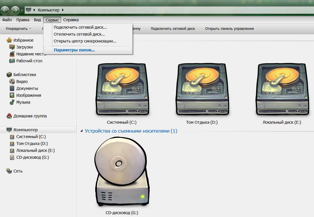 ») или любую папку на вашем компьютере - Пройдите далее в «Сервис