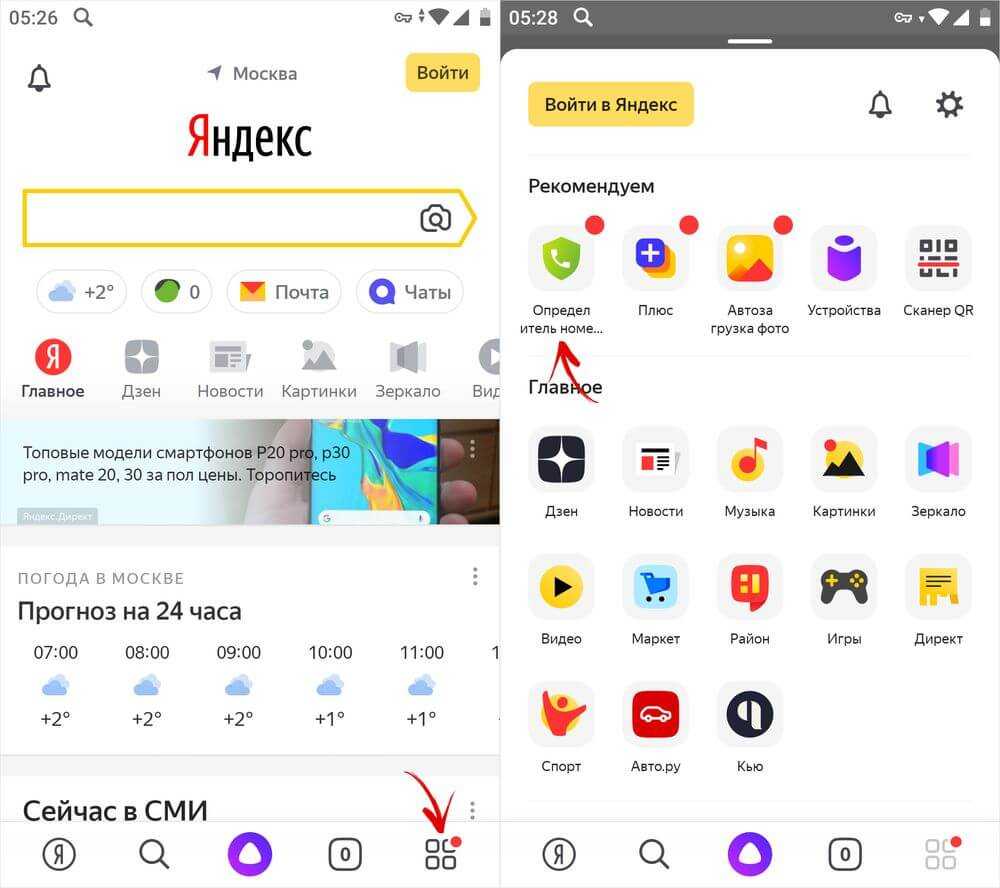 «Яндекс» объединяет в себе все сервисы компании: «Поиск», «Почту», «Дзен», «Музыку», «Карты», «Маркет» и другие. Также в приложение интегрирован голосовой ассистент «Алиса». А вот определить номеров -это обособленный компонент приложения, для его включения и настройки даже не обязательно взаимодействовать с программой «Яндекс» – все просто, главное чтобы она была установлена на смартфоне.