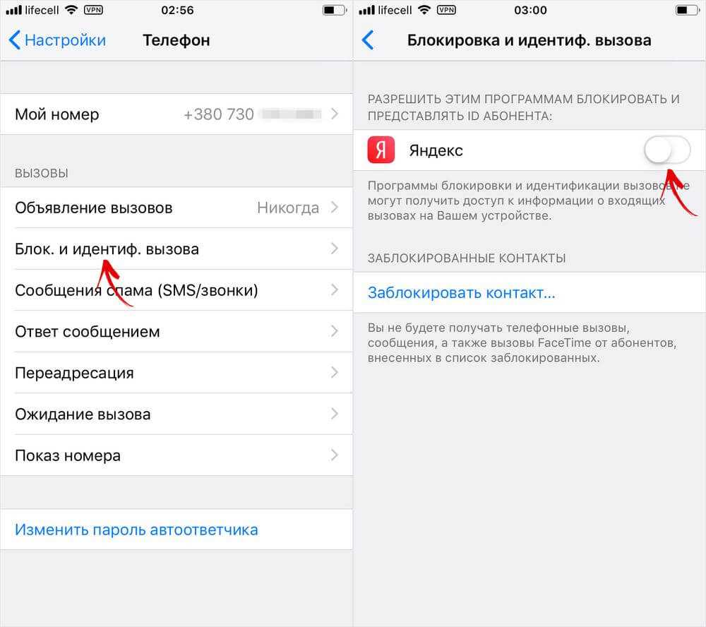 Далее откройте подраздел «Блокировка и идентификация вызова» и передвиньте переключатель программы «Яндекс». Так вы разрешите приложению блокировать и показывать ID абонента.