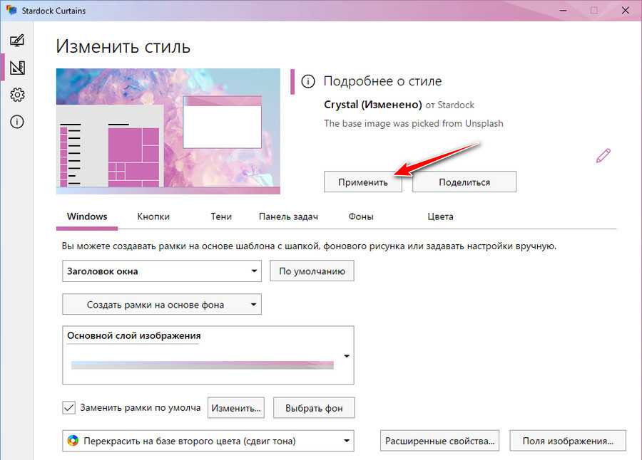 Далее редактируем: задаём параметры оформления окон, кнопок, теней, панели задач, выбираем цвета, можем подобрать фон, т.е. обои. В конце можем применить созданный стиль.