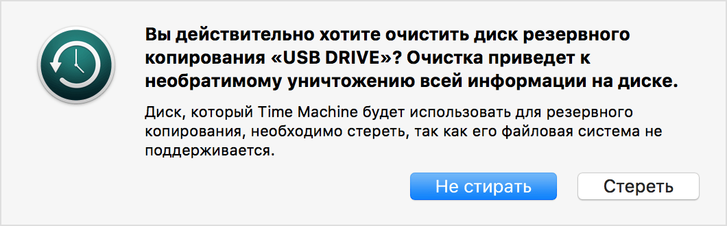 Time Machine предназначена для резервного копирования ваших личных файлов на MacBook и последующего их восстановления. Но для этого требуются внешние USB-накопители (HDD, SDD), отформатированные в MacOS Extended или Xsan; Файловые системы FAT/NTFS, разработанные для Windows и Android, не поддерживаются. Если диск ранее был отформатирован в форматах FAT/NTFS, MacBook не примет его, если откажется форматировать «сам».
