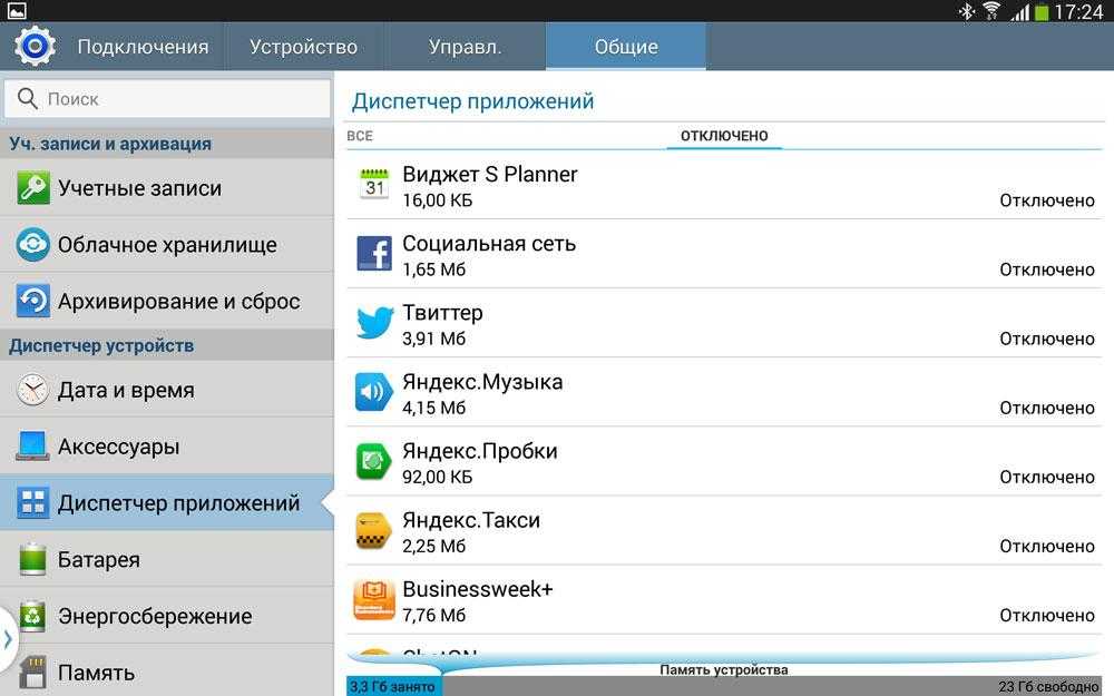 4) Вернитесь в «Диспетчер приложений» и найдите отключенные приложения. Включите все отключенные приложения (возможно ошибка возникает из-за того, что приложение связано или ссылается на другое, которое отключено). Для этого поочередно выберите приложения и нажмите «Включить».