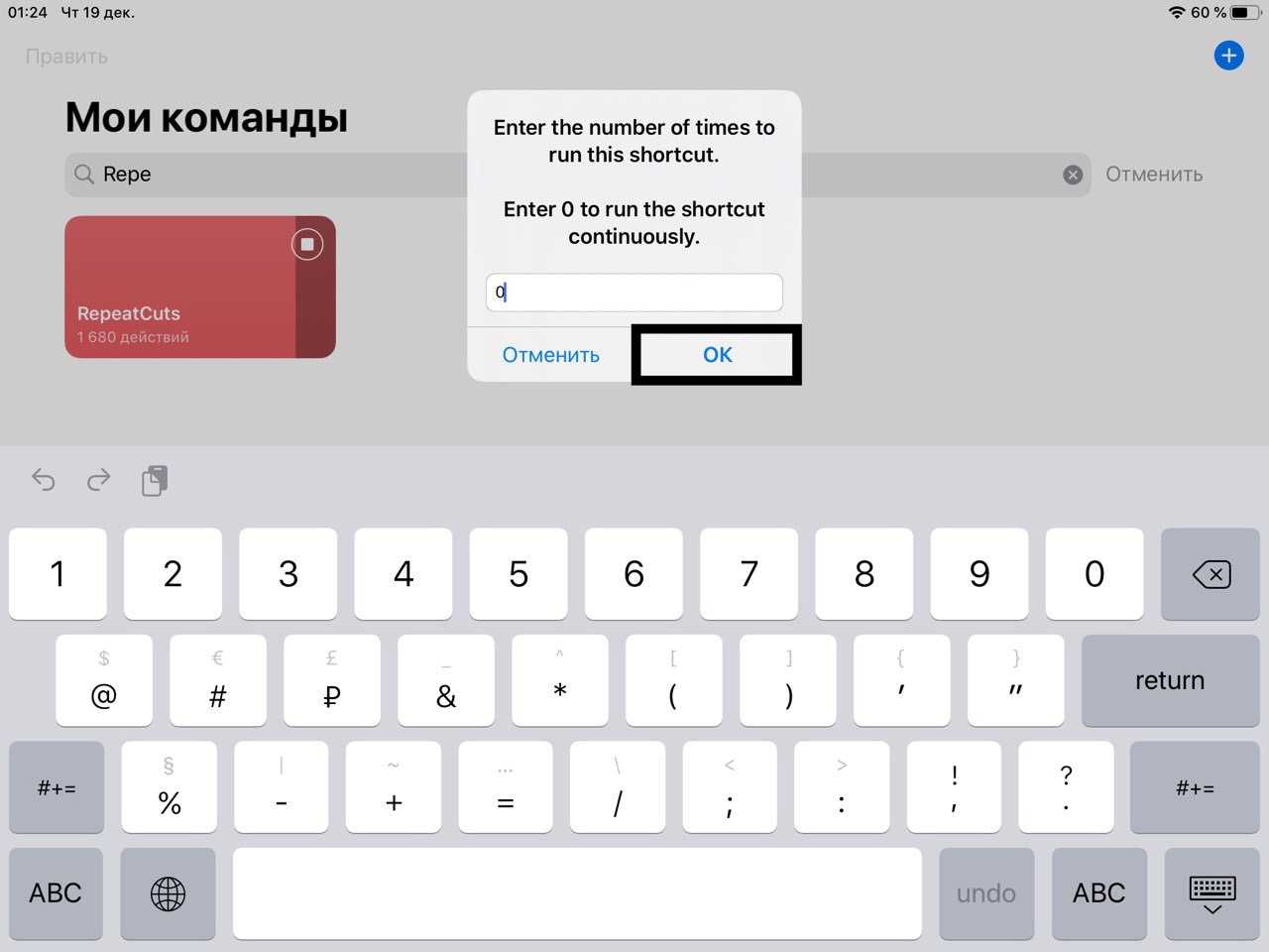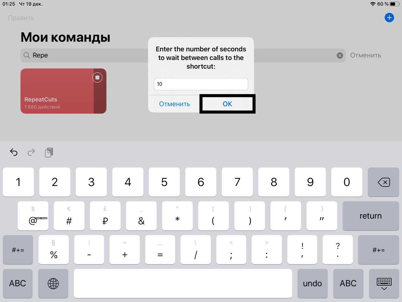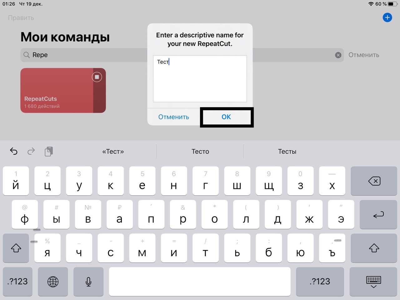 Введите имя вашего repeatcut и нажмите «ОК»