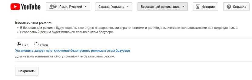 Родительский контроль в YouTube