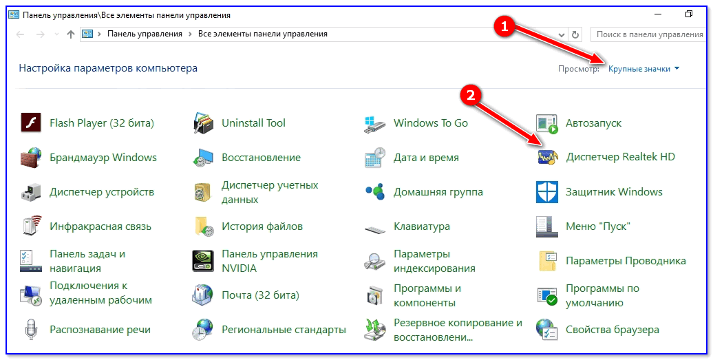 После перезагрузки, рекомендую сразу открыть панель управления, перевести режим отображения в «Крупные значки» и посмотреть, появилась ли ссылка на диспетчер Realtek (в моем случае, после установки версии 2.81 – все заработало!).