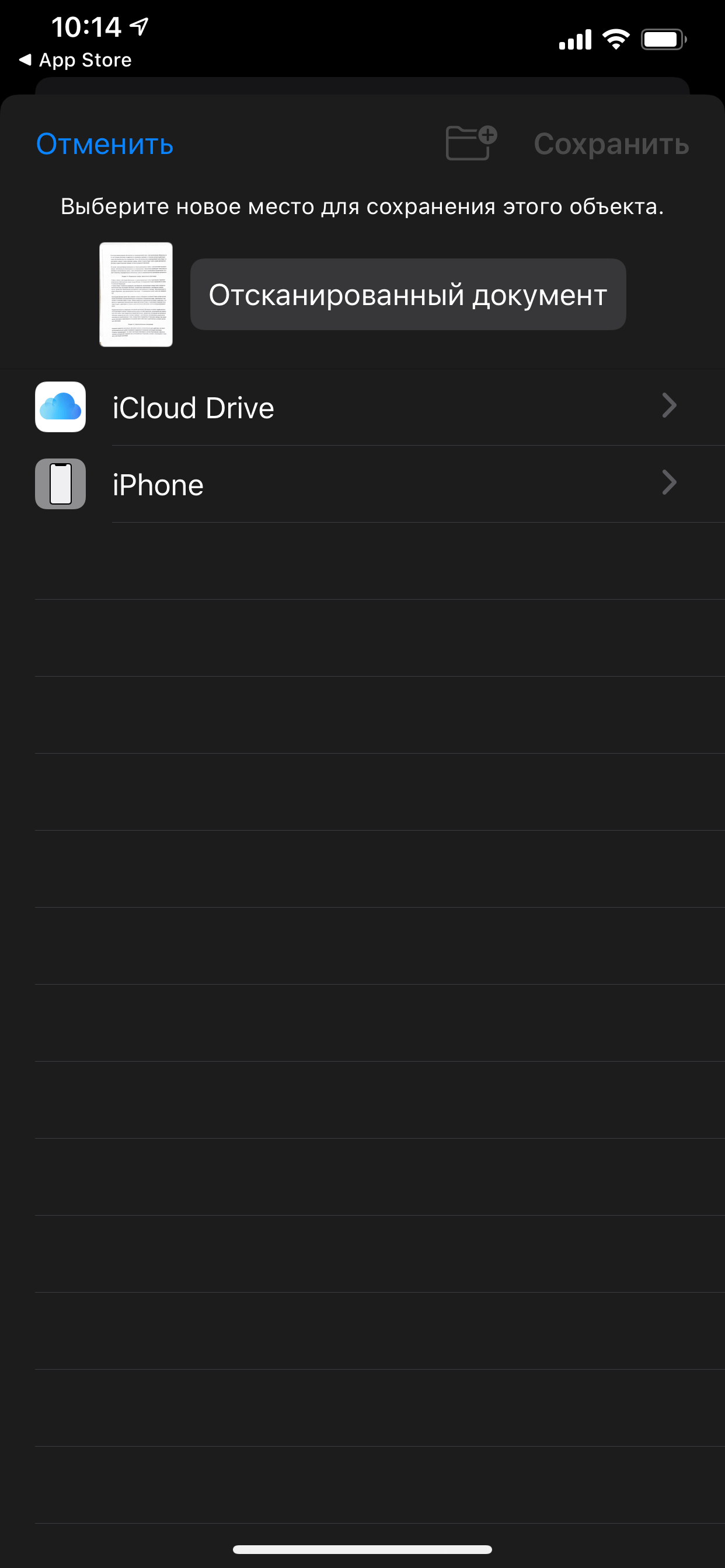 После этого можно отредактировать отсканированный документ — например, переместить границы углов, чтобы выделить необходимый текст или просто придать документу нужную форму. Полученный файл можно сохранить на айфон, в iCloud Drive или, например, отправить на почту.