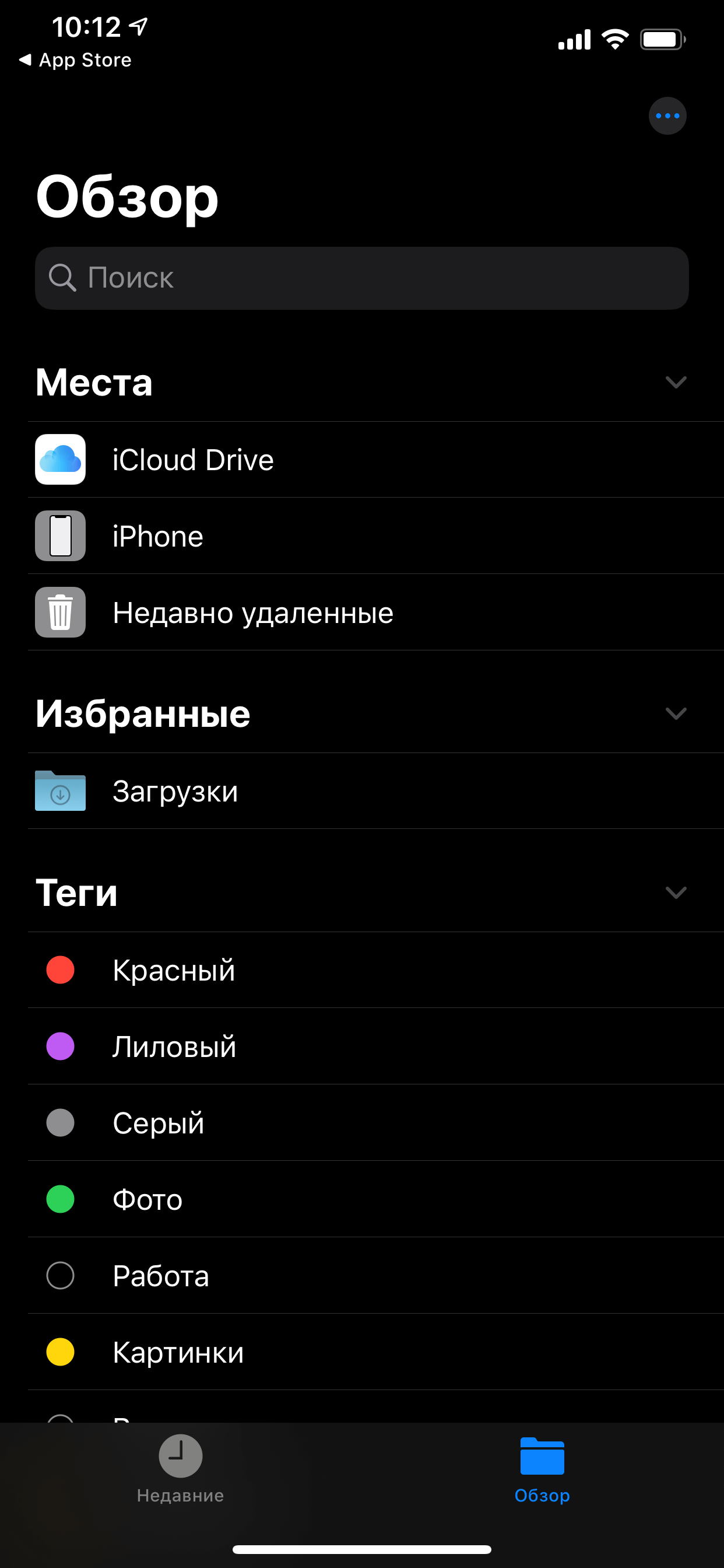 - Откройте приложение «Файлы» (или снова загрузите его из App Store, если ранее удаляли за ненадобностью), после чего перейдите на вкладку «Обзор» в нижней навигационной панели.