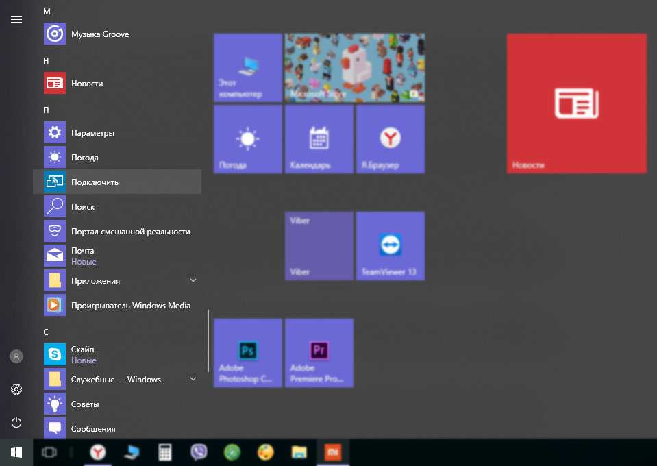 1. В Windows Открываем «Пуск», листаем меню до буквы «П» и находим там приложение «Подключить».
