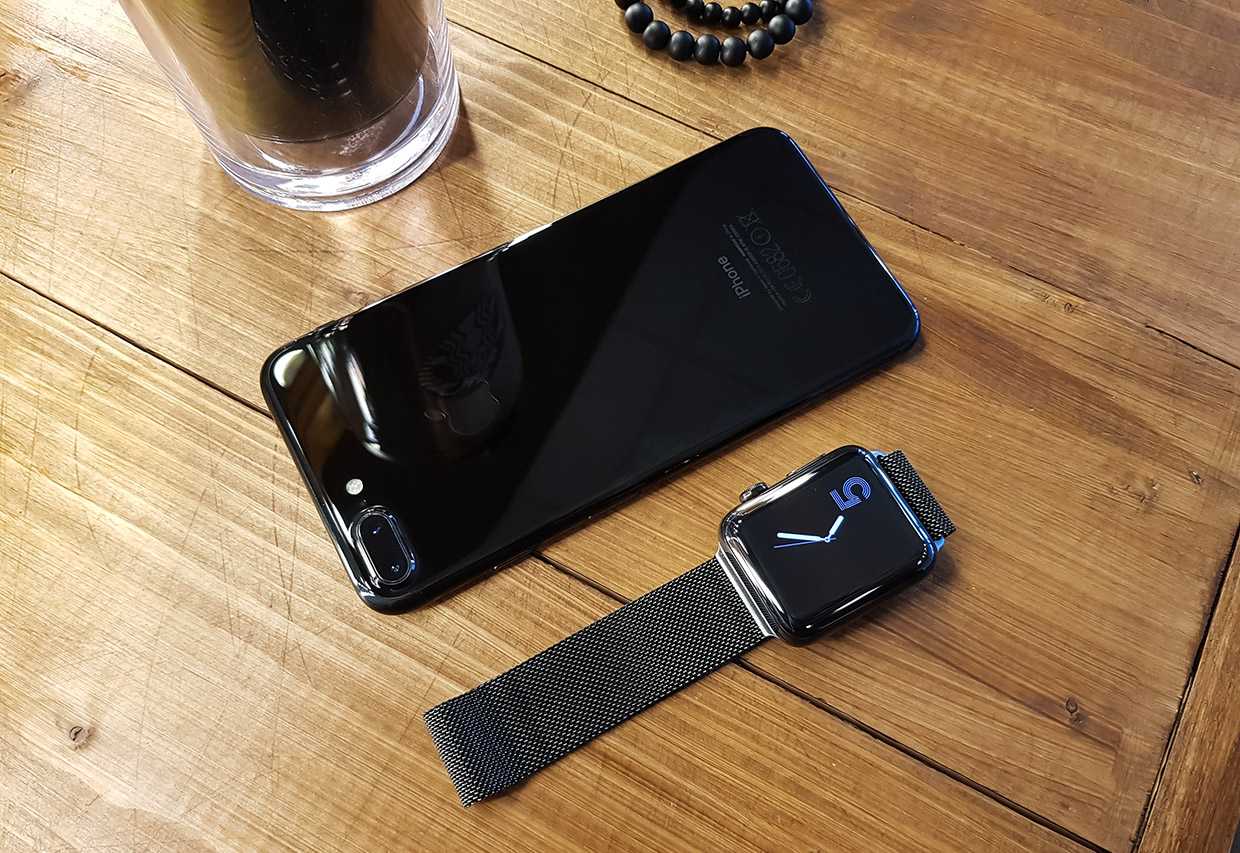 Похожи на iPhone Jet Black и составляют с ним отличный тандем. Экран плавно перетекает в корпус глубокого черного цвета и сливается с ним. С миланским сетчатым или блочным браслетом этот эффект ещё больше усиливается.
