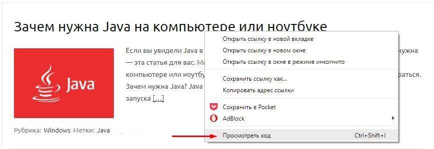 Для примера я возьму этот же сайт и изменю предыдущий анонс статьи “ ” Открываю главную страницу в Google Chrome. Нажимаю ПКМ по элементу, который я хочу изменить, например заголовок анонса и выбираю “Посмотреть код”.