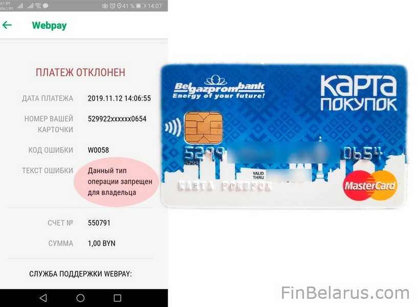 Пробовала привязать «Карту покупок» Белгазпромбанка — не получилось, выдало ошибку «Данный тип операции запрещен для владельца».