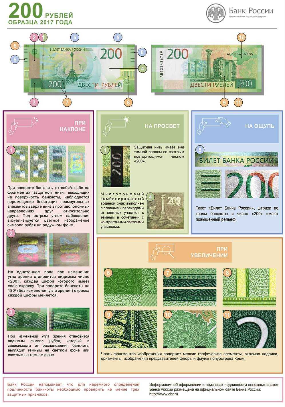 Банкноты номиналом 2 тысячи и двести рублей образца 2017 года имеют свои отличительные характеристики: