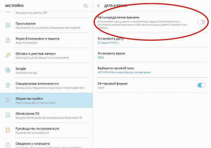 - Заходят в настройки времени и даты, отключают параметр «автоматическое определение времени».