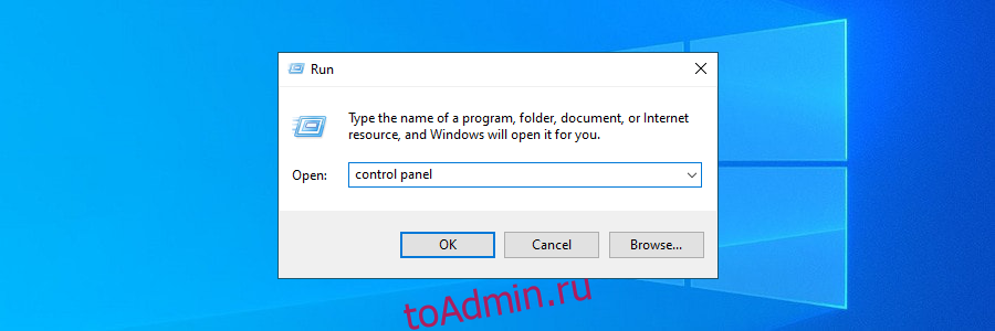 Нажмите клавиши Win + R, введите панель управления и нажмите Enter.