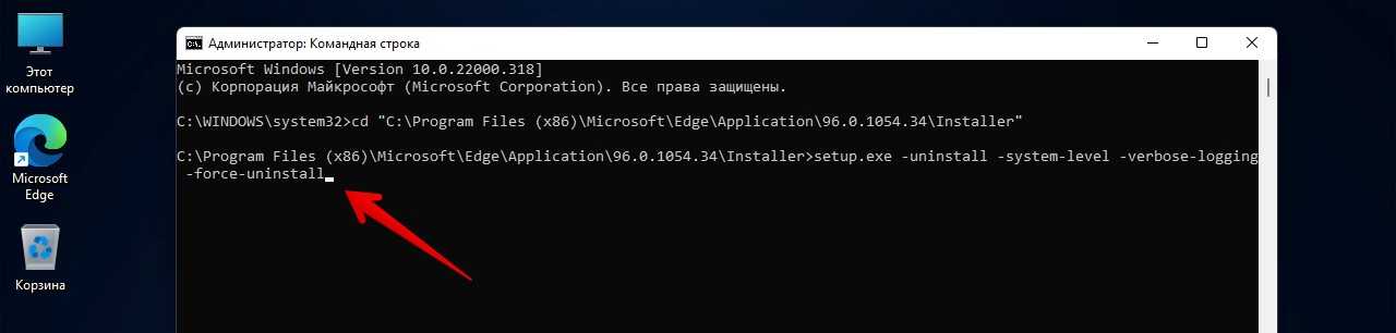 При помощи командной строки можно удалить браузер Edge на основе Chromium, который является обновленной версией старого браузера Edge.
