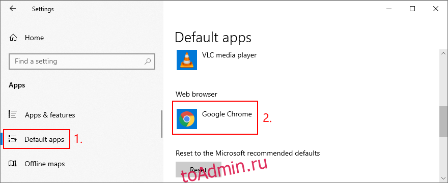 Щелкните запись в веб-браузере и выберите приложение браузера по умолчанию, которое вы предпочитаете.