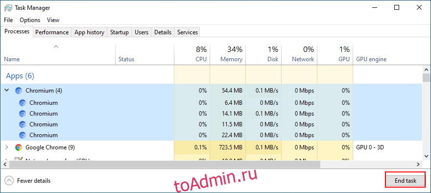 Найдите и выберите Chromium или любое незнакомое вам приложение.